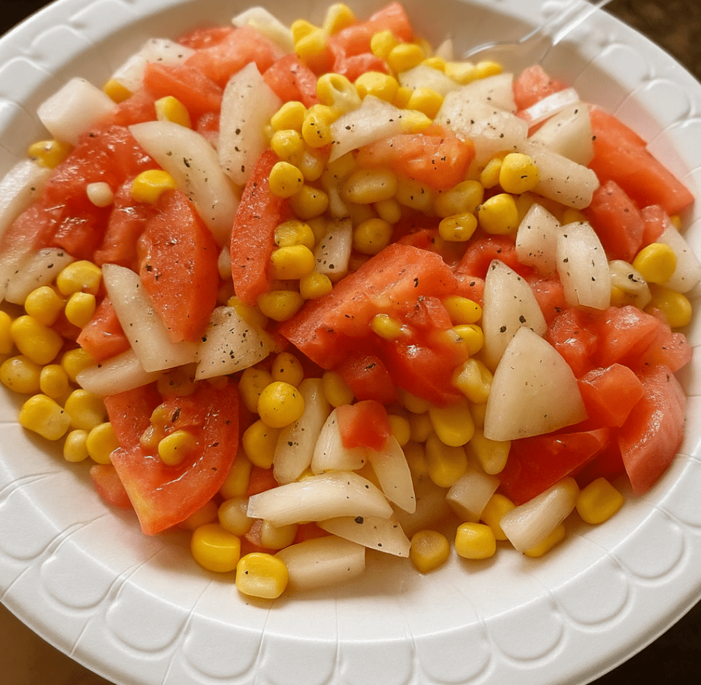 This **Corn, Tomato, and Onion Salad** is a testament to the beauty of simple, fresh ingredients. With its bright colors, crisp textures, and zesty dressing, it’s a refreshing choice for any occasion. Whether you’re hosting a barbecue, packing a picnic, or simply looking for a healthy side dish, this salad delivers big flavor with minimal effort. Enjoy the essence of summer in every bite!