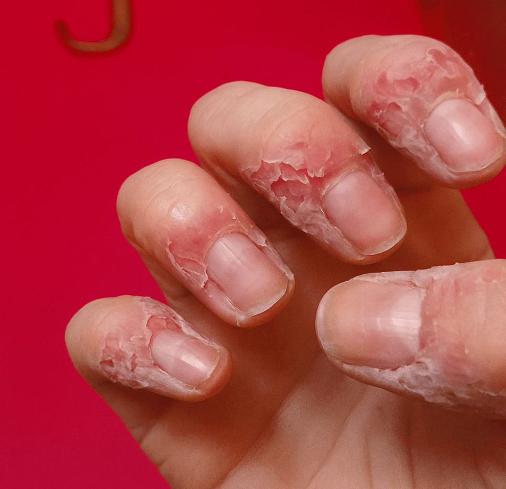 | Paronychia | Red, swollen cuticles | moisturizer + gloves |