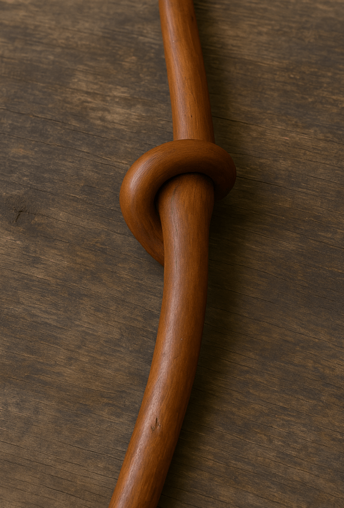 In an era of factory-made goods, some of the most treasured items are born from patience and personal touch. This walking stick began its life as a small, flexible sapling. With a single knot tied while it was young, it was left in the ground to grow—transforming over years into the unique heirloom you see today.